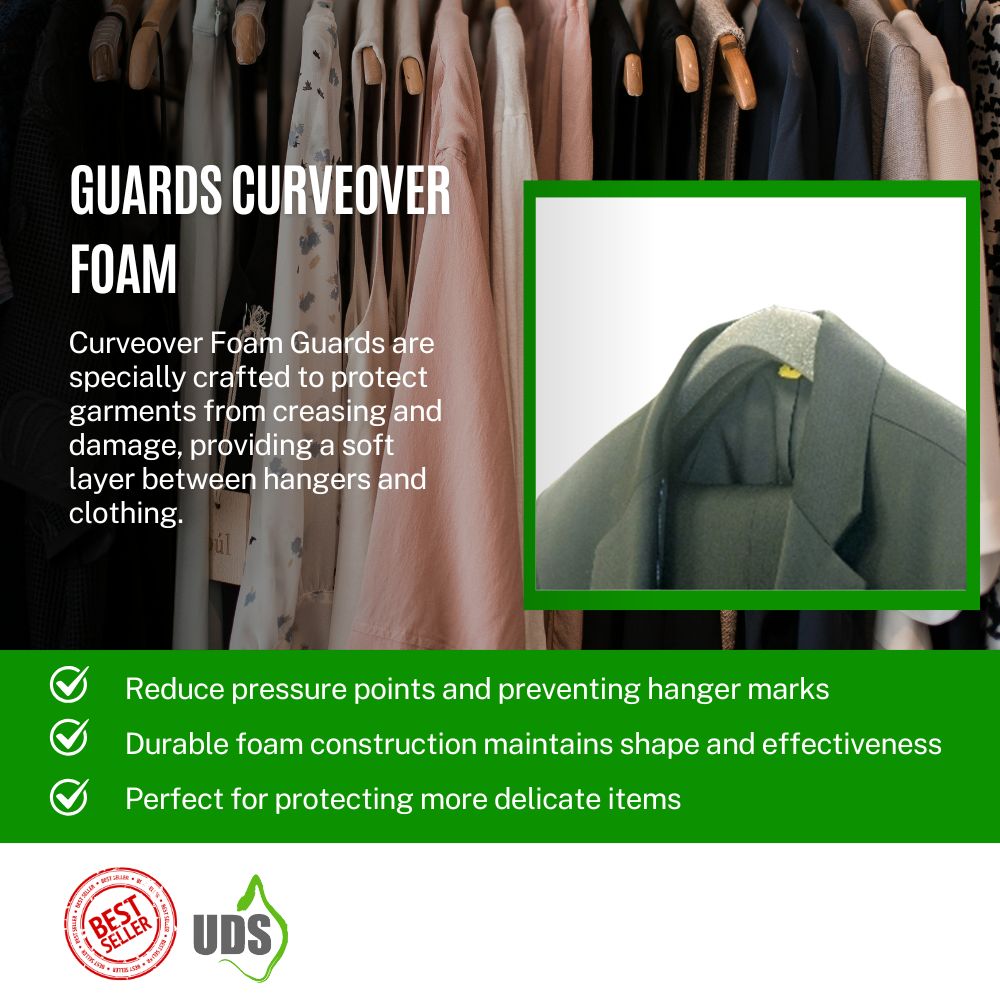 - Foam guards cushion garments, reducing pressure points and preventing hanger marks