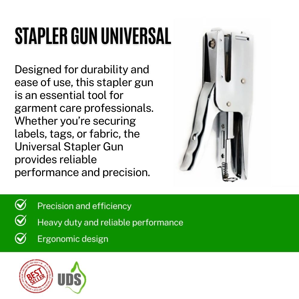 Designed for durability and ease of use, this stapler gun is an essential tool for garment care professionals. Whether you’re securing labels, tags, or fabric, the Universal Stapler Gun provides reliable performance and precision.