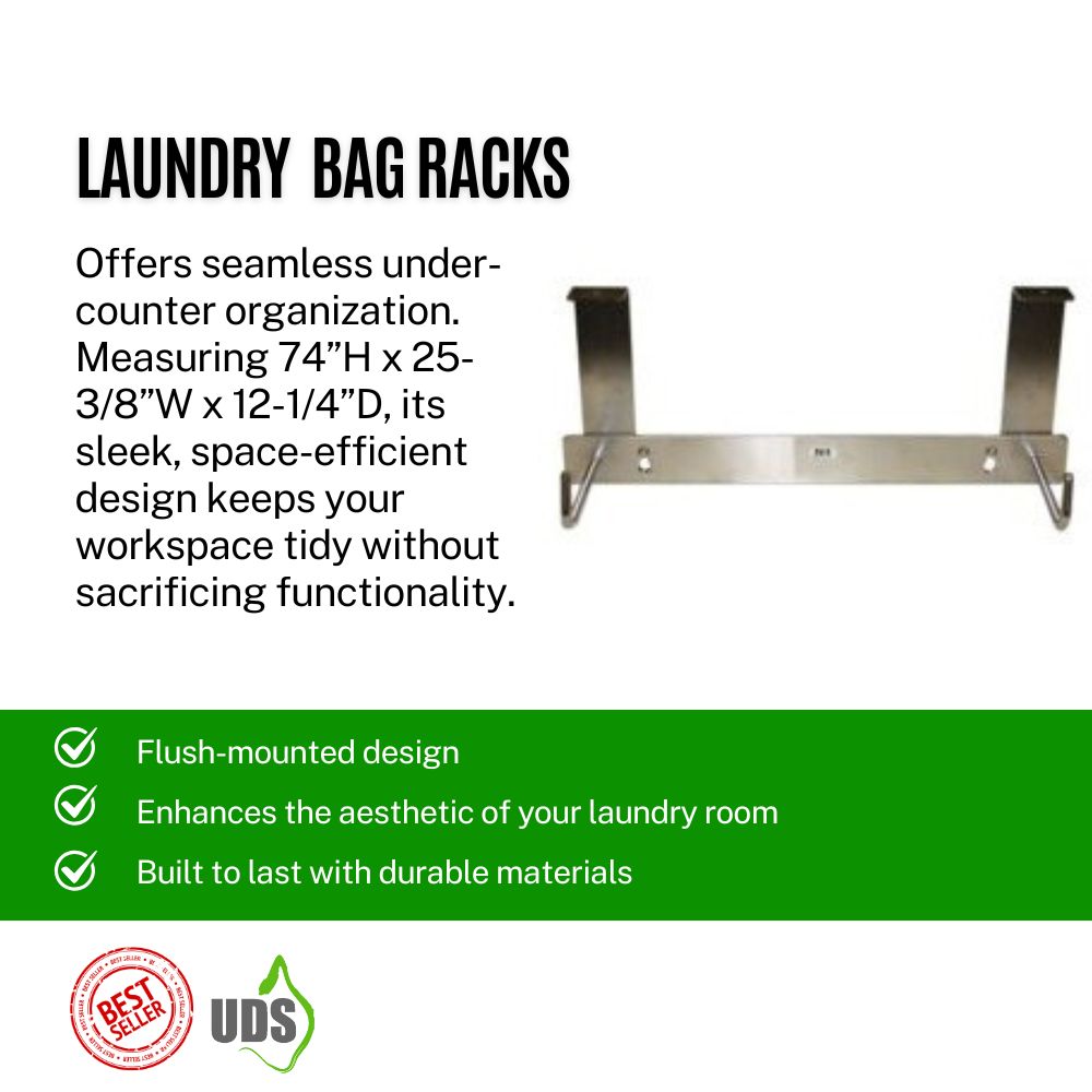 Introducing the Flush Mounted Laundry Bag Rack, meticulously designed for seamless integration and optimal functionality. This rack measures 74 inches in height, 25-3/8 inches in width, and 12-1/4 inches in depth, making it ideal for under-counter installation. Its sleek design ensures a tidy, space-efficient solution for organizing laundry bags in any setting.